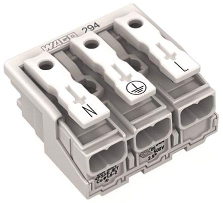 WAGO 294 Series Power Supply Connector, 3-Pole, Female, 24A