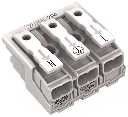 WAGO 294 Series Power Supply Connector, 3-Pole, Female, 24A