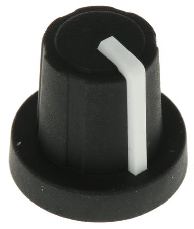 Sifam 16mm Black Potentiometer Knob for 6mm Shaft Splined, 3/03/TPN110-006/237/224