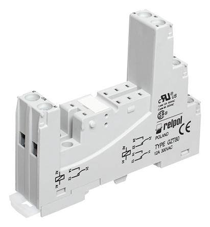 Relpol 8 Pin 300V ac DIN Rail Relay Socket, for use with RM84 Relay, RM85 Inrush Relay, RM85 Relay, RM85 Sensitive