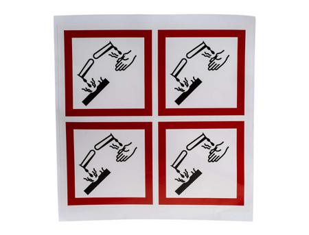 RS PRO White Gloss Polymeric Vinyl Safety Labels, GHS Corresive-Text 100 mm x 100mm