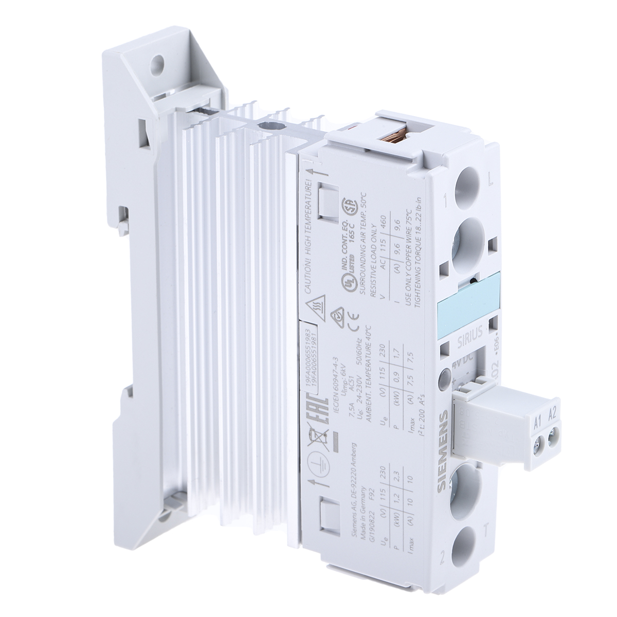 Siemens 3RF2 Series Solid State Relay, 10.5 A Load, DIN Rail Mount, 230 V Load, 24 V dc Control