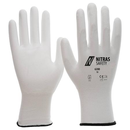 NITRAS SAFETY White Nylon Nylon Glove, Size 7, Polyurethane Coating