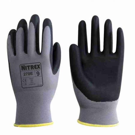 Unigloves 270E Black, Grey Polyester Work Gloves, Size 6, Nitrile Coating