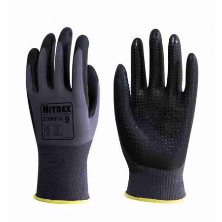 Unigloves 270NFG Black, Grey Nylon Work Gloves, Size 8, Nitrile Foam Coating